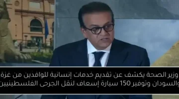 وزير الصحة يكشف عن تقديم خدمات إنسانية للوافدين من غزة والسودان وتوفير 150 سيارة إسعاف لنقل الجرحى الفلسطينيين