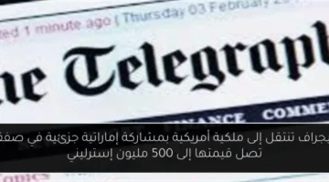 تليجراف تنتقل إلى ملكية أمريكية بمشاركة إماراتية جزئية في صفقة تصل قيمتها إلى 500 مليون إسترليني