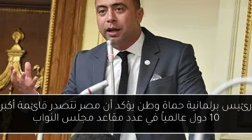 رئيس برلمانية حماة وطن يؤكد أن مصر تتصدر قائمة أكبر 10 دول عالمياً في عدد مقاعد مجلس النواب