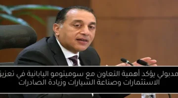 مدبولي يؤكد أهمية التعاون مع سوميتومو اليابانية في تعزيز الاستثمارات وصناعة السيارات وزيادة الصادرات