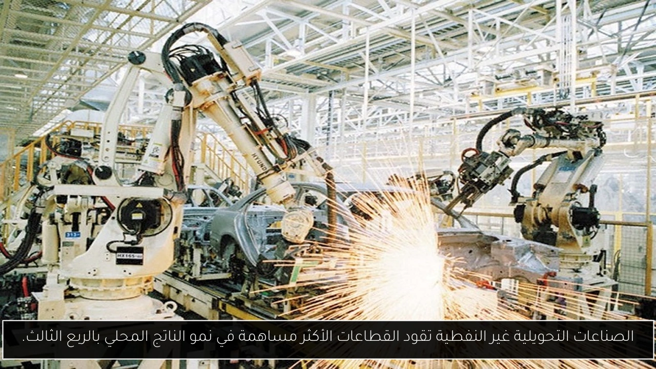 الصناعات التحويلية غير النفطية تقود القطاعات الأكثر مساهمة في نمو الناتج المحلي بالربع الثالث.