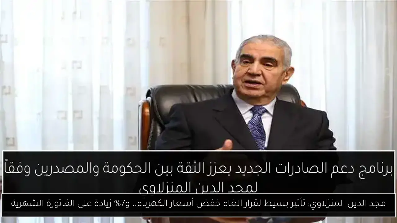مجد الدين المنزلاوي: تأثير بسيط لقرار إلغاء خفض أسعار الكهرباء.. و7% زيادة على الفاتورة الشهرية