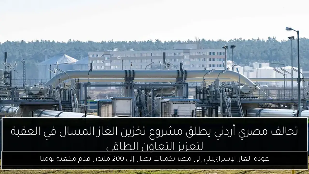 عودة الغاز الإسرائيلي إلى مصر بكميات تصل إلى 200 مليون قدم مكعبة يوميا