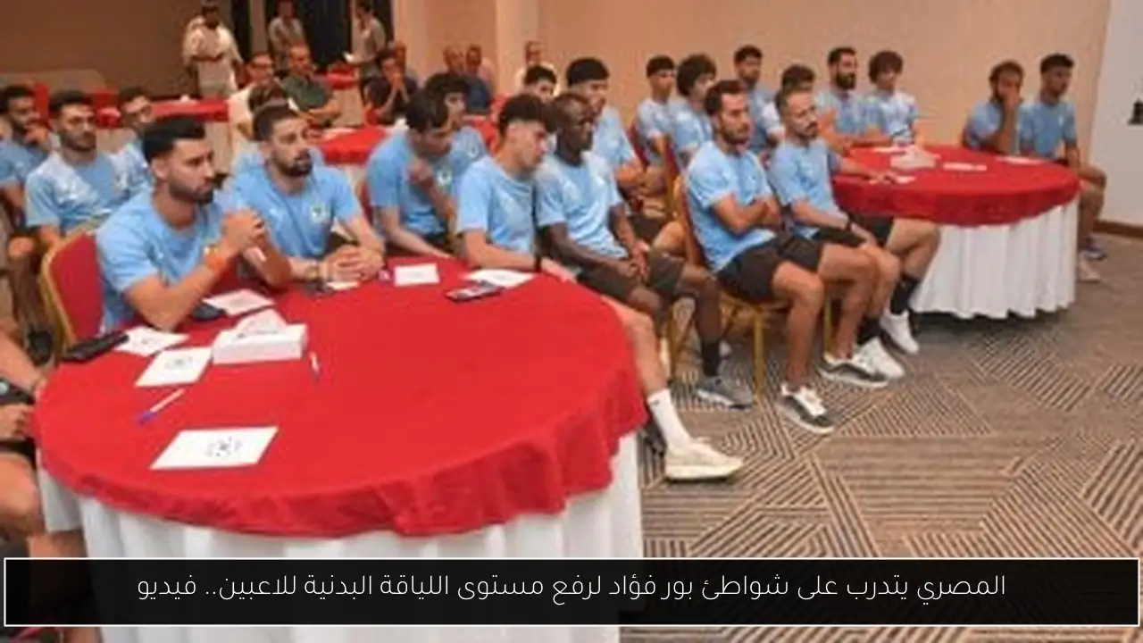 المصري يتدرب على شواطئ بور فؤاد لرفع مستوى اللياقة البدنية للاعبين.. فيديو
