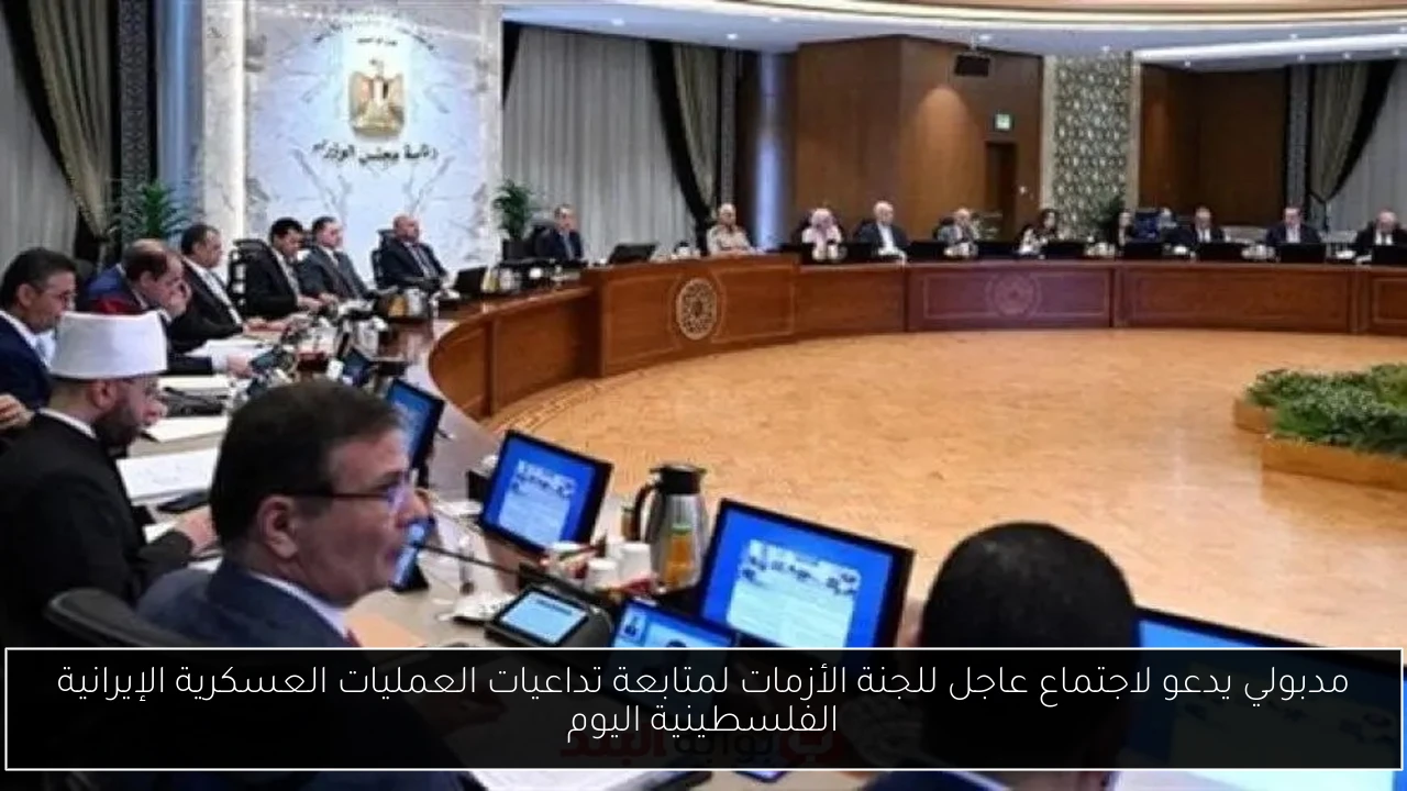 مدبولي يدعو لاجتماع عاجل للجنة الأزمات لمتابعة تداعيات العمليات العسكرية الإيرانية الفلسطينية اليوم