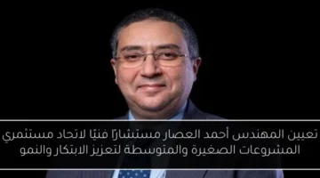 تعيين المهندس أحمد العصار مستشارًا فنيًا لاتحاد مستثمري المشروعات الصغيرة والمتوسطة لتعزيز الابتكار والنمو
