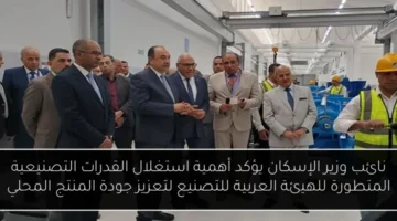 نائب وزير الإسكان يؤكد أهمية استغلال القدرات التصنيعية المتطورة للهيئة العربية للتصنيع لتعزيز جودة المنتج المحلي