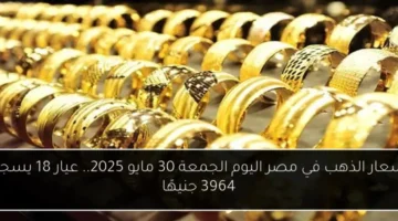 أسعار الذهب في مصر اليوم الجمعة 30 مايو 2025.. عيار 18 يسجل 3964 جنيهًا