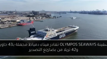 سفينة OLYMPOS SEAWAYS تغادر ميناء دمياط محملة بـ43 حاوية و42 تريلا من بضائع التصدير