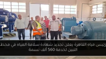 رئيس مياه القاهرة يعلن تجديد شهادة سلامة المياه في محطة التبين لخدمة 560 ألف نسمة