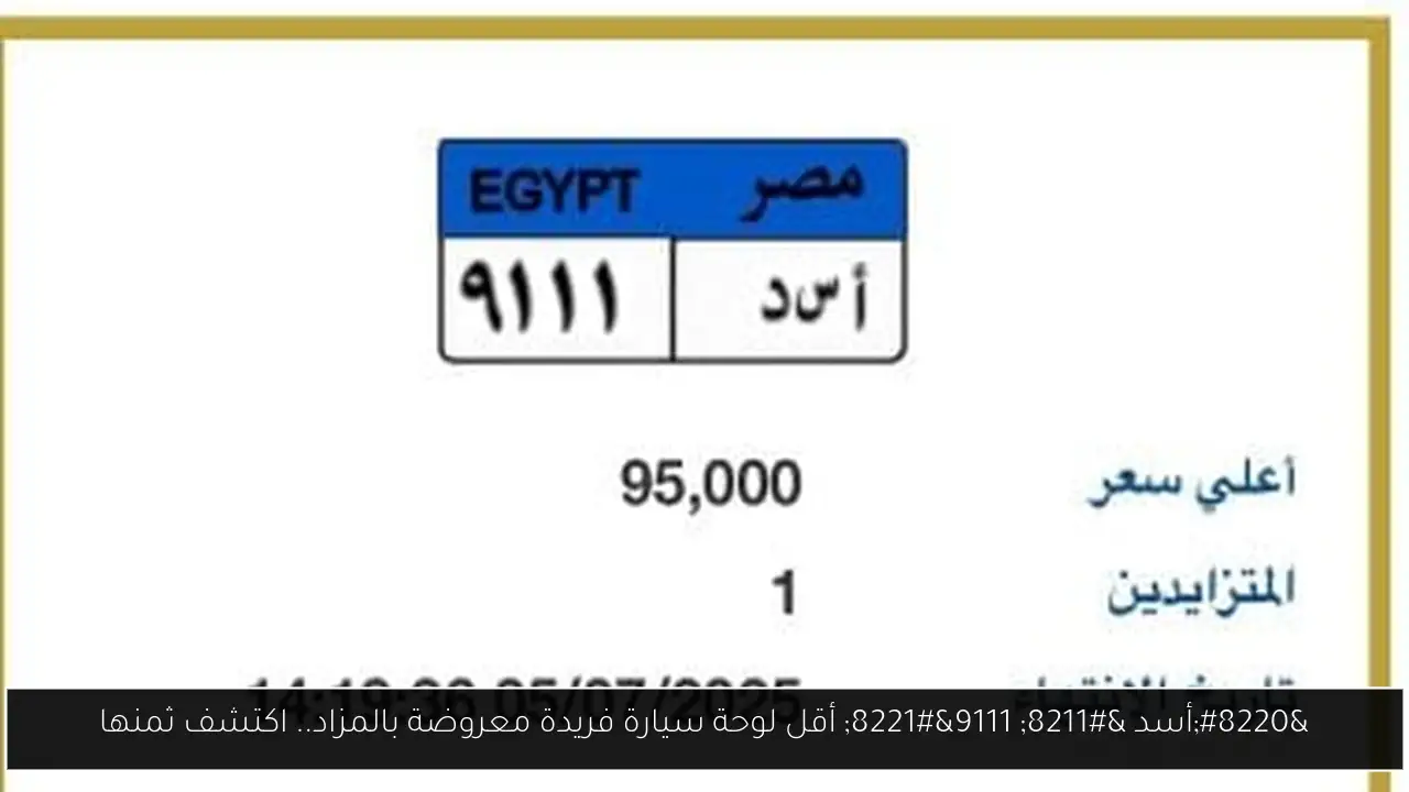 “أسد – 9111” أقل لوحة سيارة فريدة معروضة بالمزاد.. اكتشف ثمنها