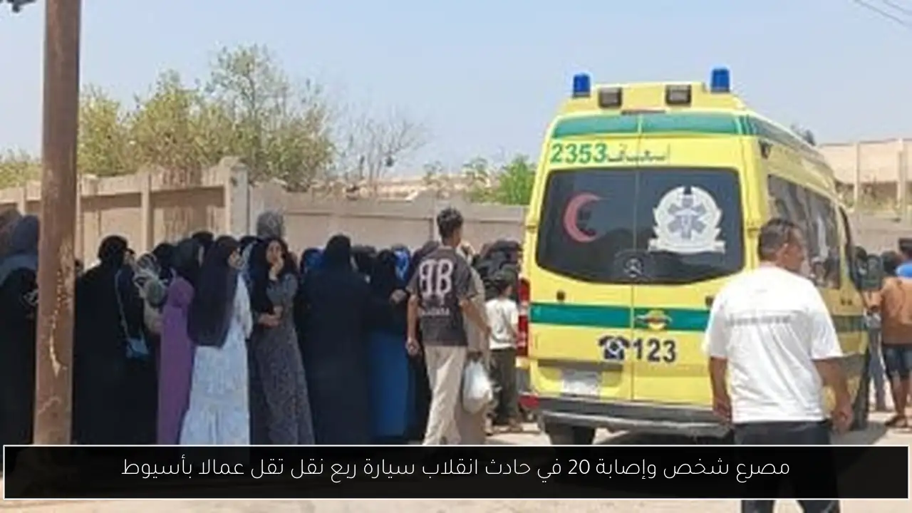 مصرع شخص وإصابة 20 في حادث انقلاب سيارة ربع نقل تقل عمالا بأسيوط