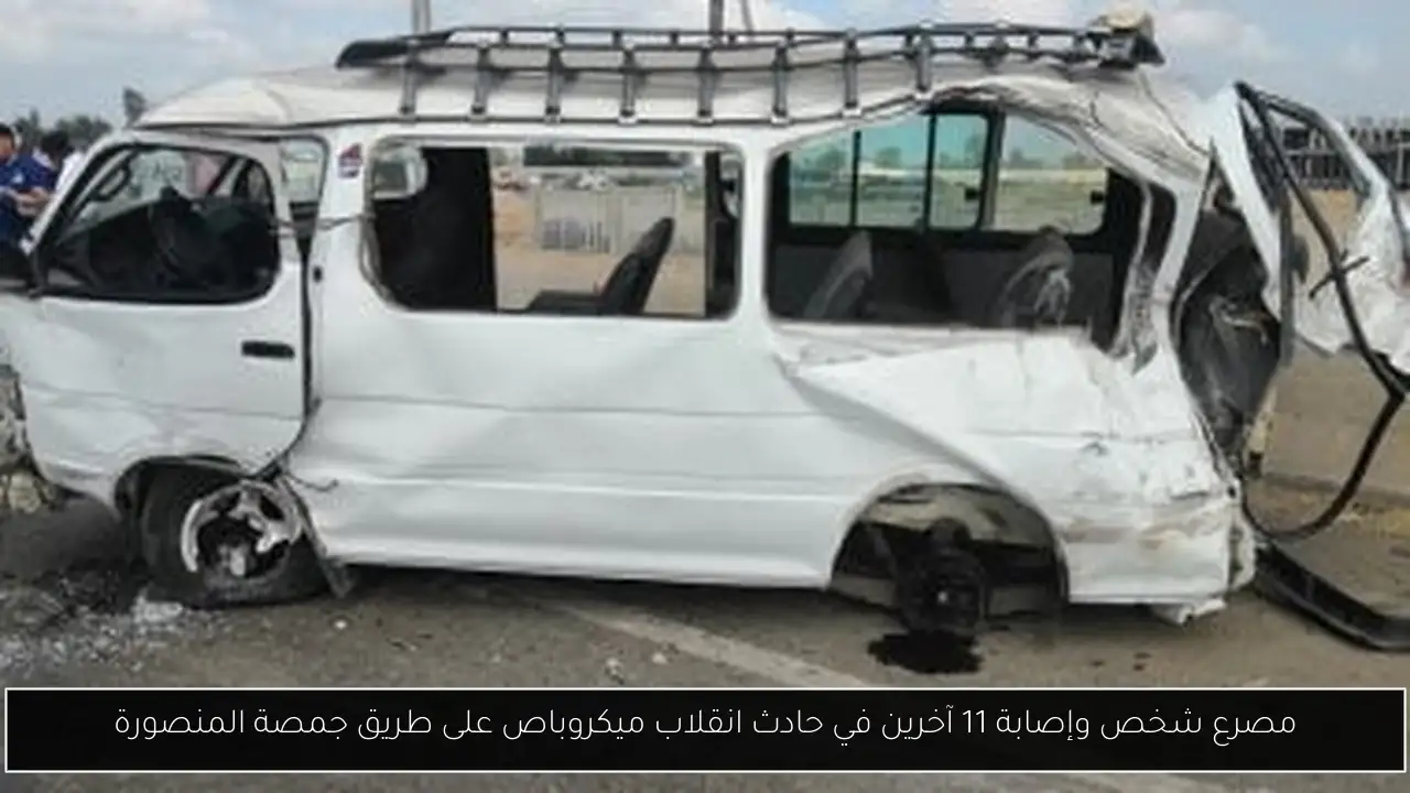 مصرع شخص وإصابة 11 آخرين في حادث انقلاب ميكروباص على طريق جمصة المنصورة