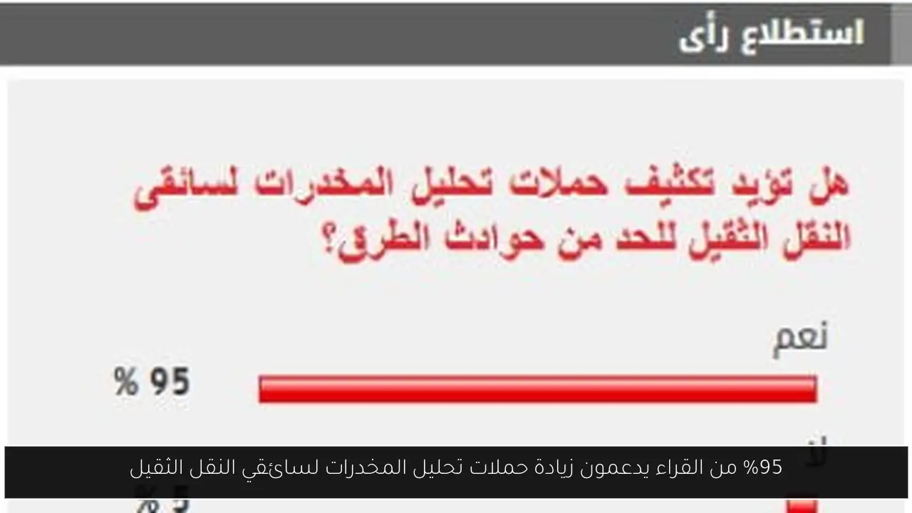 %95 من القراء يدعمون زيادة حملات تحليل المخدرات لسائقي النقل الثقيل