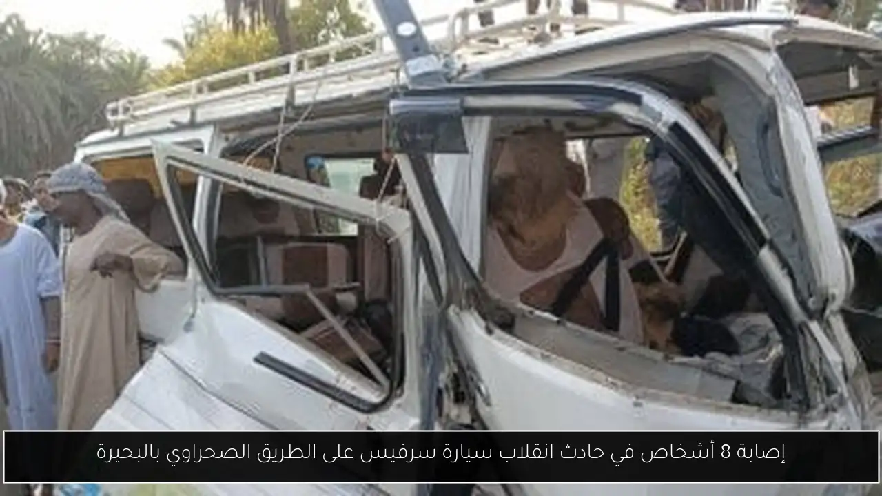 إصابة 8 أشخاص في حادث انقلاب سيارة سرفيس على الطريق الصحراوي بالبحيرة
