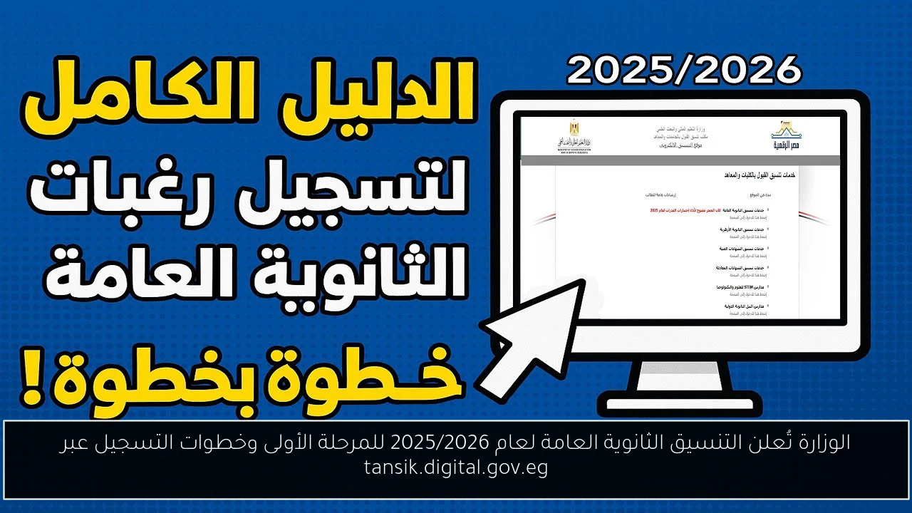 الوزارة تُعلن التنسيق الثانوية العامة لعام 2025/2026 للمرحلة الأولى وخطوات التسجيل عبر tansik.digital.gov.eg