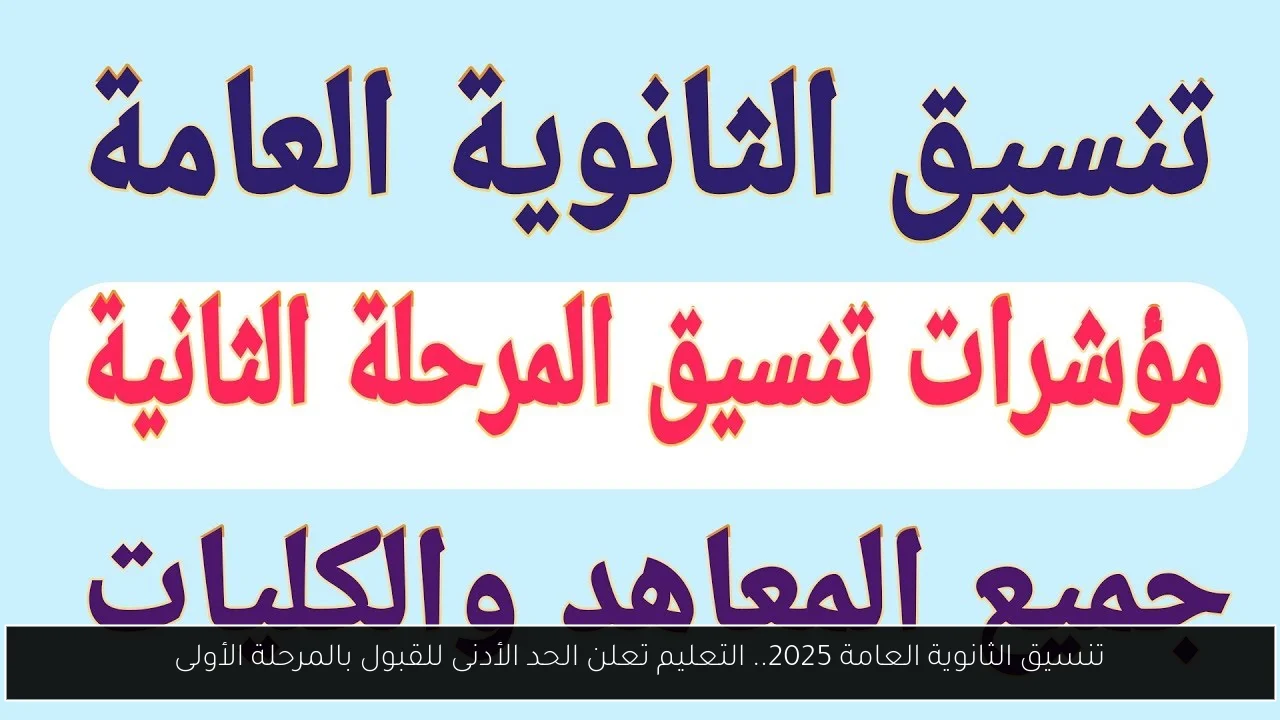 تنسيق الثانوية العامة 2025.. التعليم تعلن الحد الأدنى للقبول بالمرحلة الأولى