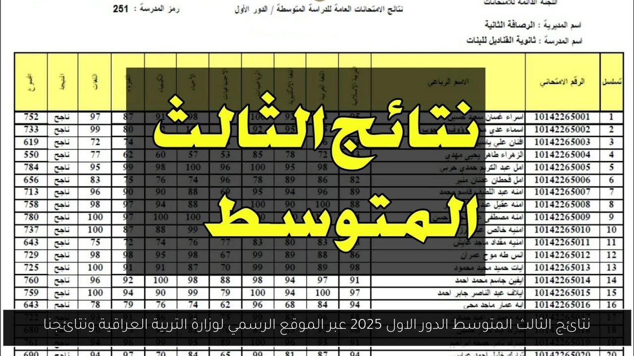 نتائج الثالث المتوسط الدور الاول 2025 عبر الموقع الرسمي لوزارة التربية العراقية ونتائجنا