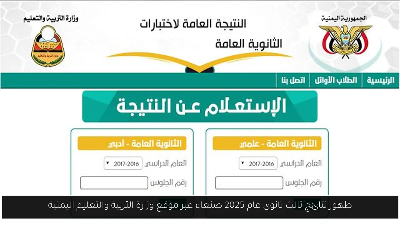 ظهور نتائج ثالث ثانوي عام 2025 صنعاء عبر موقع وزارة التربية والتعليم اليمنية