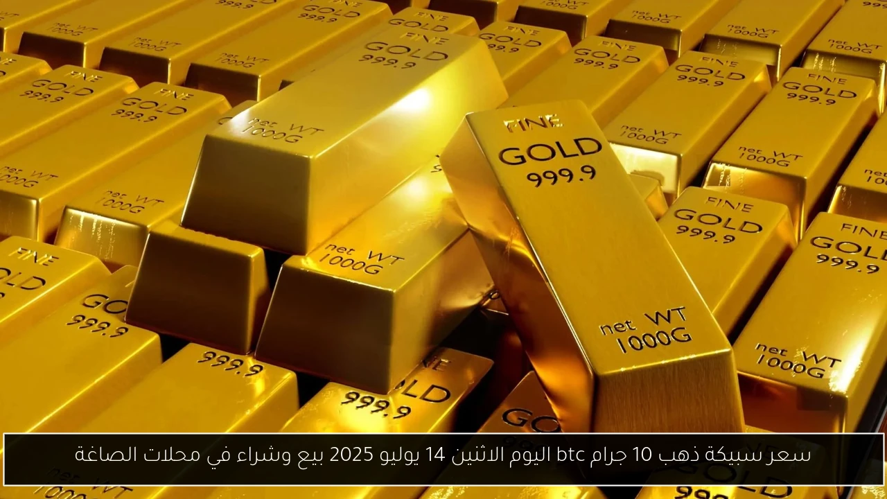 سعر سبيكة ذهب 10 جرام btc اليوم الاثنين 14 يوليو 2025 بيع وشراء في محلات الصاغة