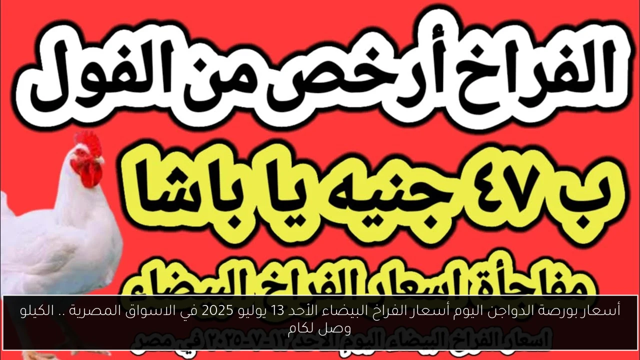 أسعار بورصة الدواجن اليوم أسعار الفراخ البيضاء الأحد 13 يوليو 2025 في الاسواق المصرية .. الكيلو وصل لكام
