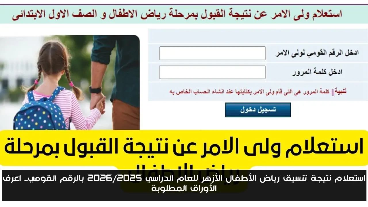 استعلام نتيجة تنسيق رياض الأطفال الأزهر للعام الدراسي 2026/2025 بالرقم القومي.. اعرف الأوراق المطلوبة