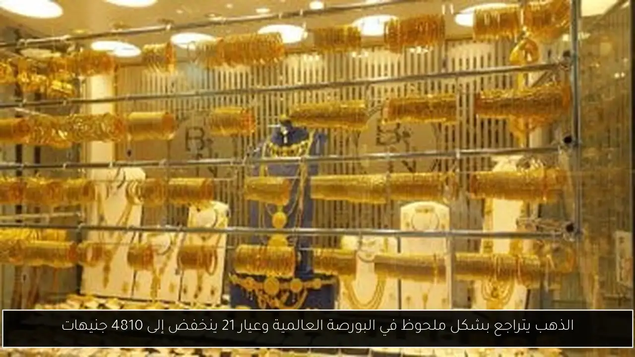 الذهب يتراجع بشكل ملحوظ في البورصة العالمية وعيار 21 ينخفض إلى 4810 جنيهات