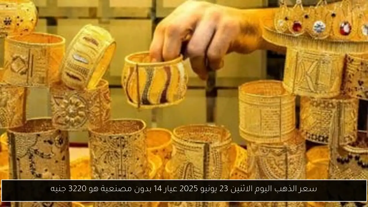 سعر الذهب اليوم الاثنين 23 يونيو 2025 عيار 14 بدون مصنعية هو 3220 جنيه