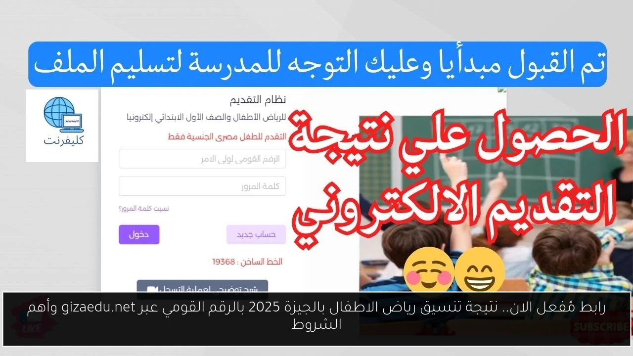 رابط مُفعل الان.. نتيجة تنسيق رياض الاطفال بالجيزة 2025 بالرقم القومي عبر gizaedu.net وأهم الشروط