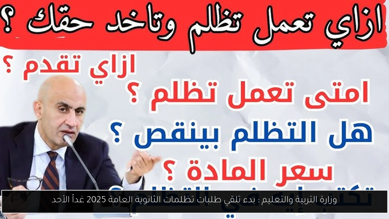وزارة التربية والتعليم : بدء تلقي طلبات تظلمات الثانوية العامة 2025 غداً الأحد