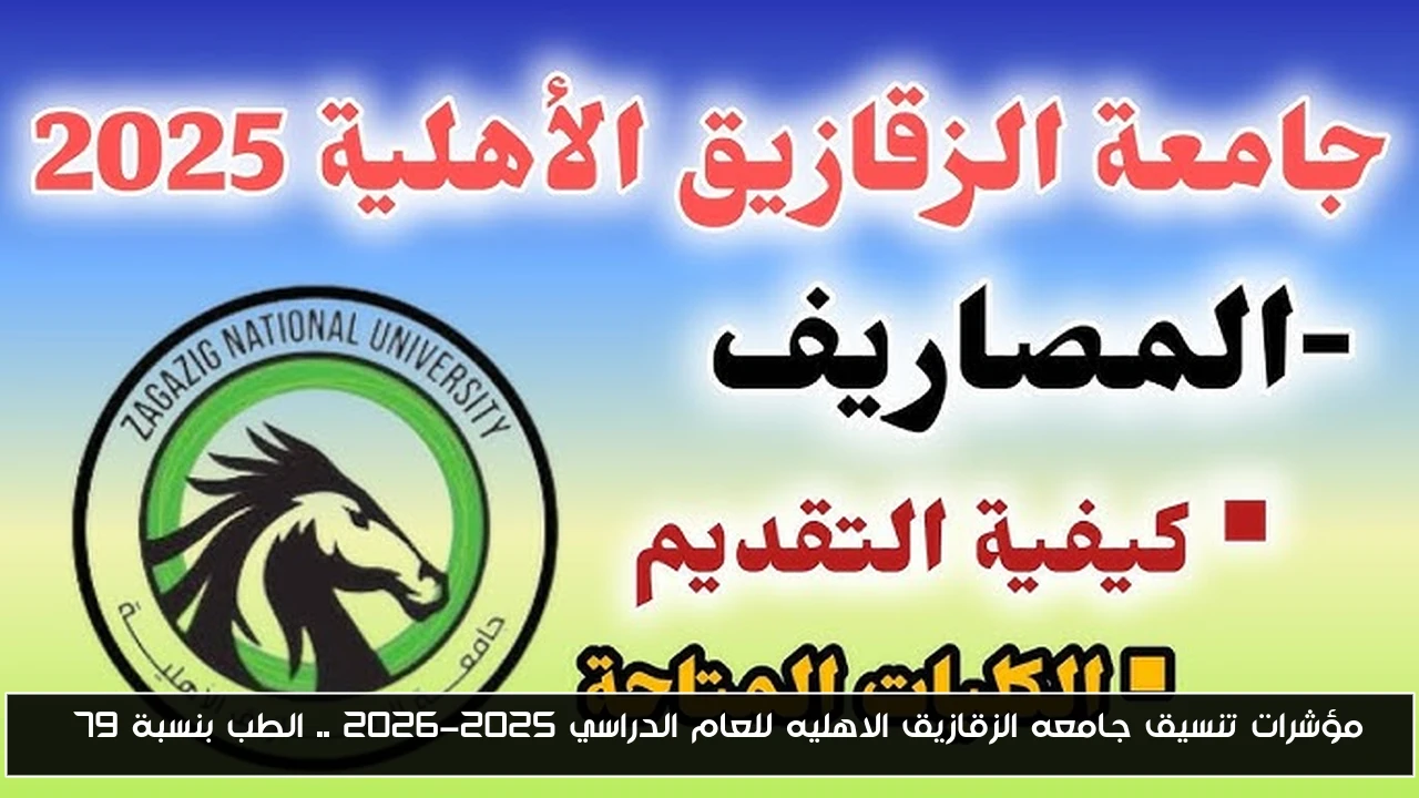 مؤشرات تنسيق جامعه الزقازيق الاهليه للعام الدراسي 2025-2026 .. الطب بنسبة 79%