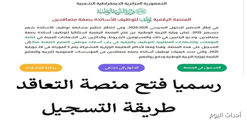 “فرصتك”.. خطوات التسجيل عبر رابط منصة التعاقد 2025 لتوظيف الأساتذة في الجزائر
