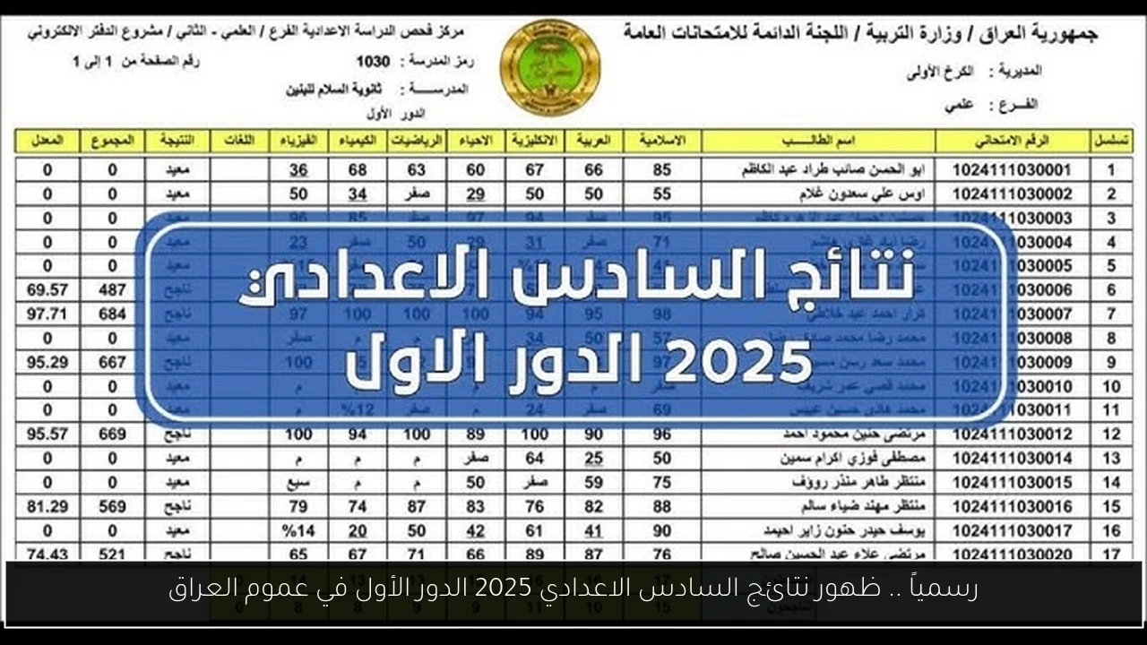 pdf نتائج السادس الاعدادي 2025 الدور الأول عبر موقع التربية والتعليم بالعراق