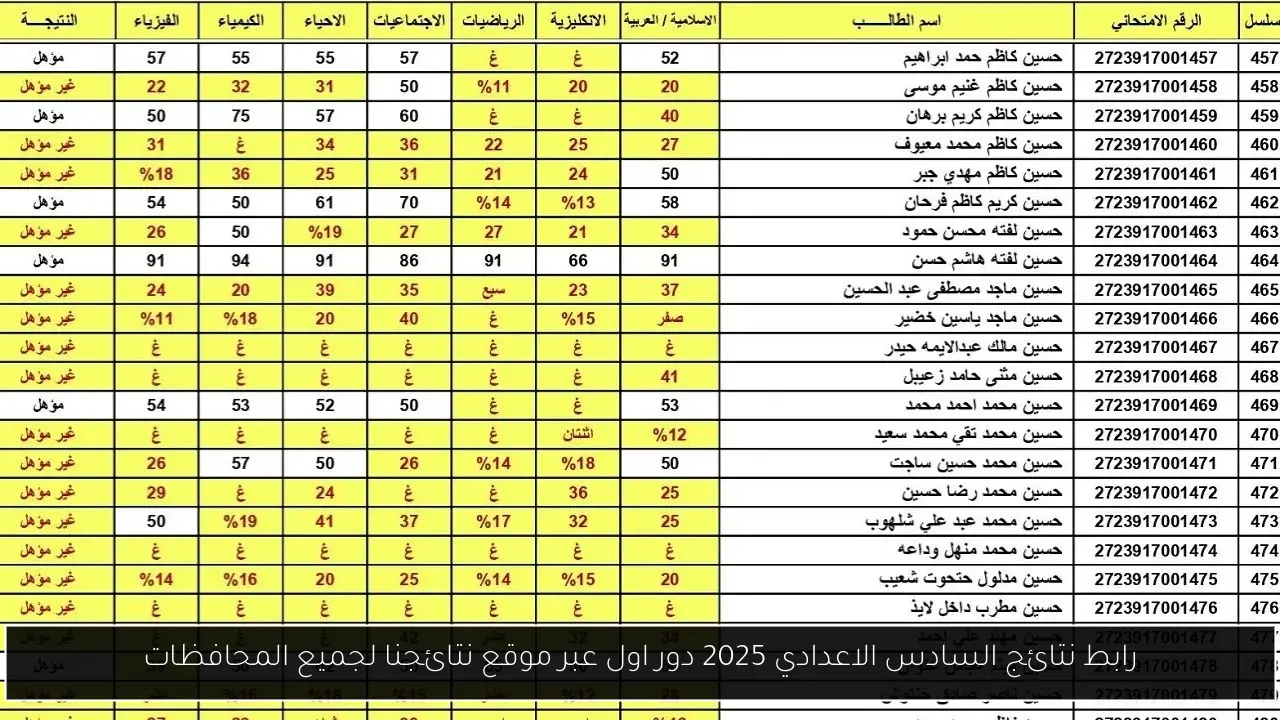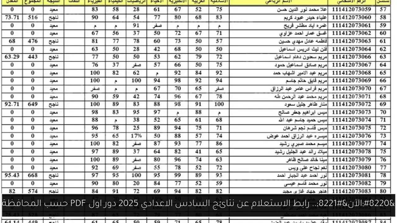 رابط نتائج السادس اعدادي pdf الدور الأول 2025.. استعلم بالرقم الامتحاني والمحافظة