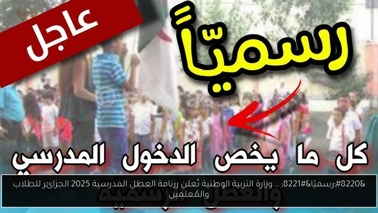 “رسميًا” .. وزارة التربية الوطنية تُعلن رزنامة العطل المدرسية 2025 الجزائر للطلاب والمُعلمين