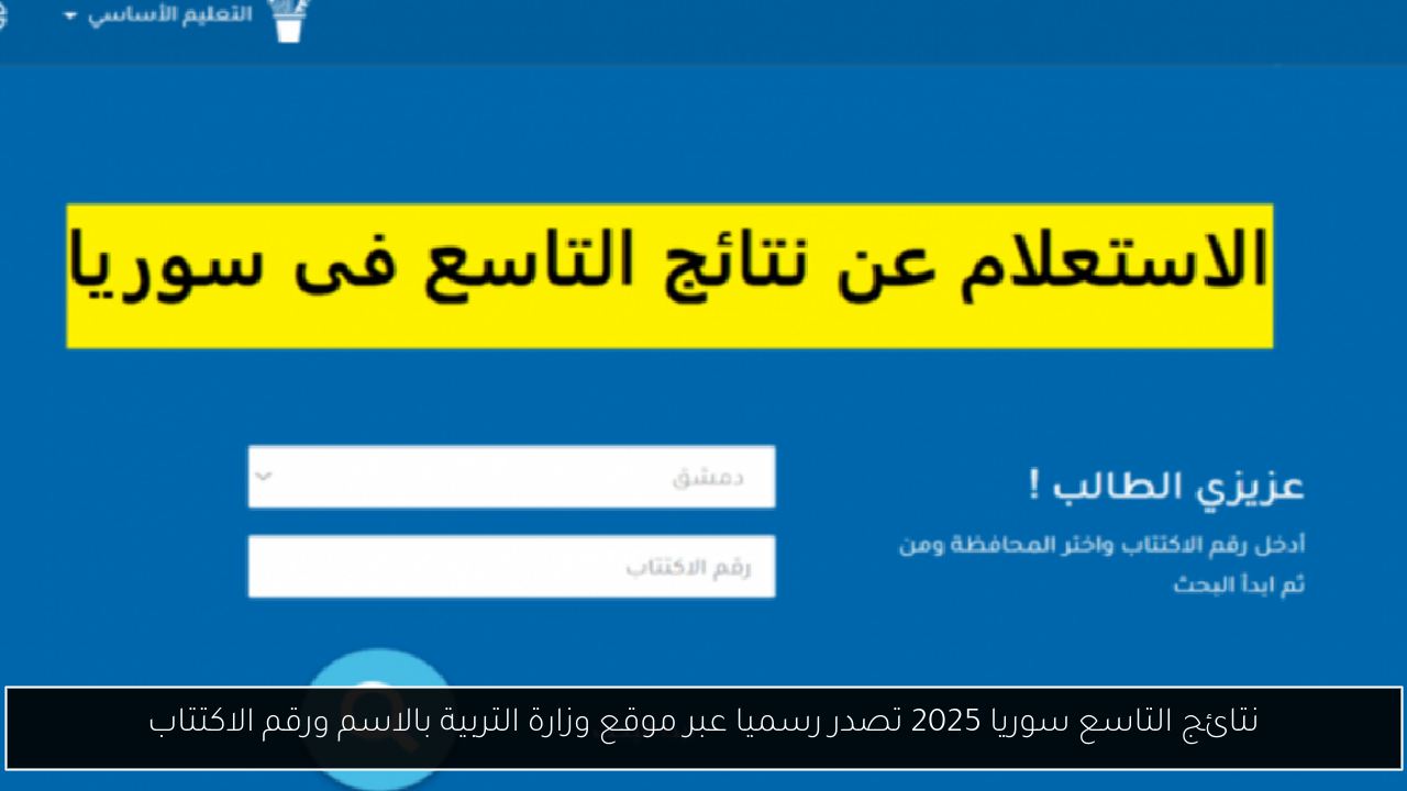 نتائج التاسع سوريا 2025 تصدر رسميا عبر موقع وزارة التربية بالاسم ورقم الاكتتاب