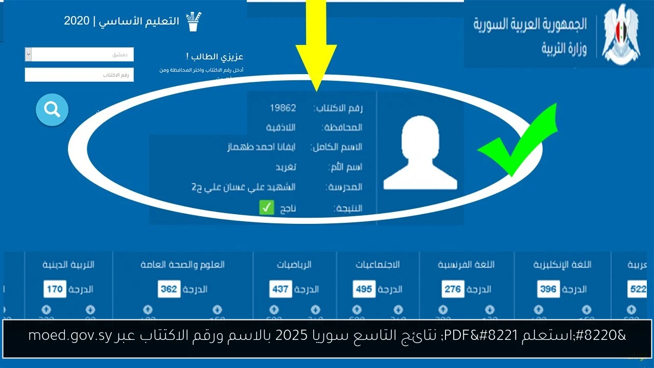 “استعلم PDF” نتائج التاسع سوريا 2025 بالاسم ورقم الاكتتاب عبر moed.gov.sy