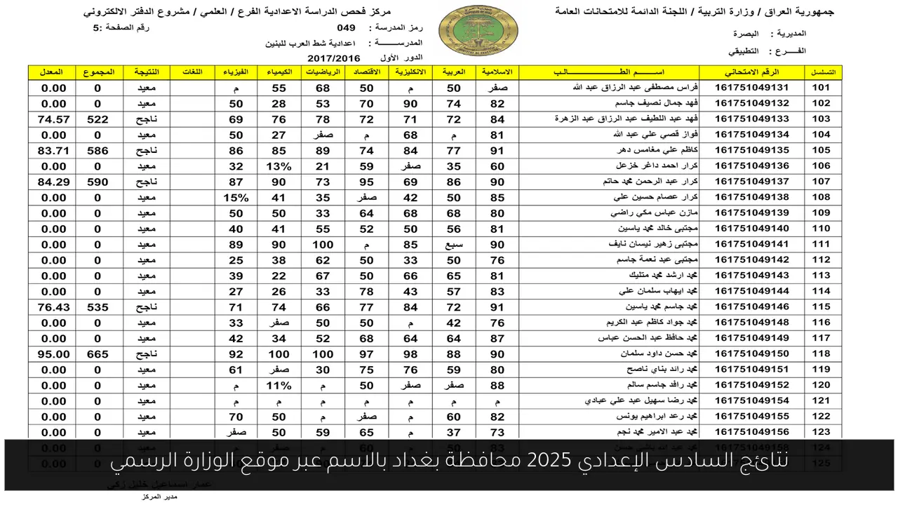 نتائج السادس الإعدادي 2025 محافظة بغداد بالاسم عبر موقع الوزارة الرسمي