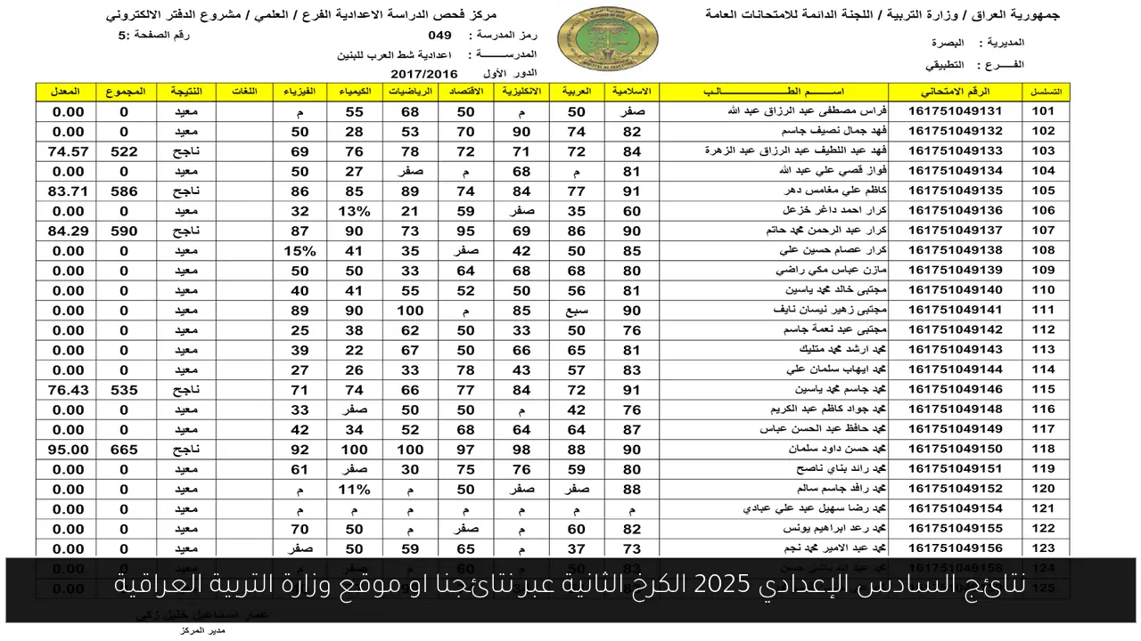 نتائج السادس الإعدادي 2025