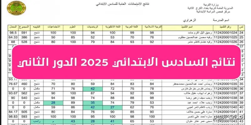 ظهور نتائج السادس الابتدائي 2025 الدور الثاني PDF في جميع محافظات العراق