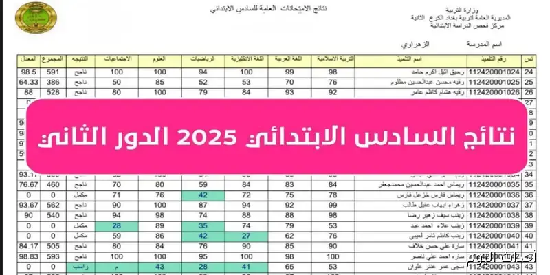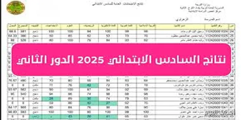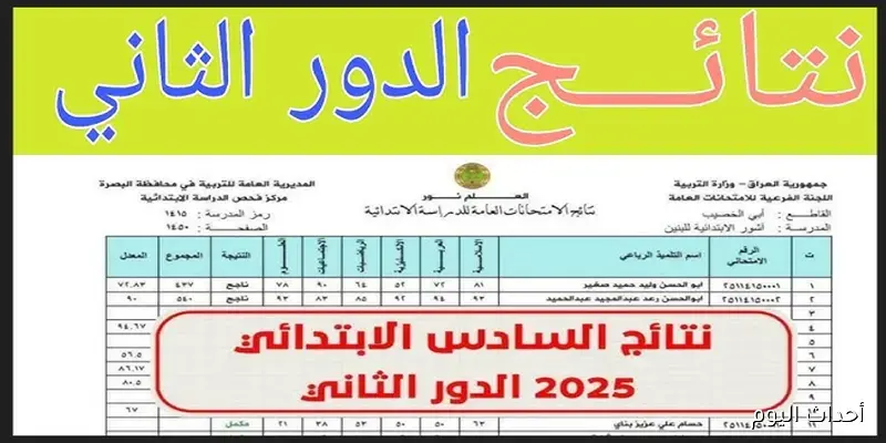 نتائج السادس الابتدائي 2025 الدور الثاني