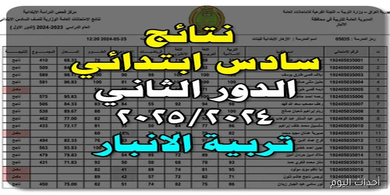 “تحميل ملفات PDF” نتائج السادس الابتدائي 2025 الدور الثاني الانبار موقع نتائجنا