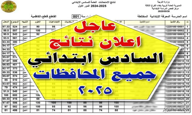 الآن.. ظهور نتائج السادس الابتدائي 2025 الدور الثاني بالرقم الامتحاني عبر epedu.gov.iq