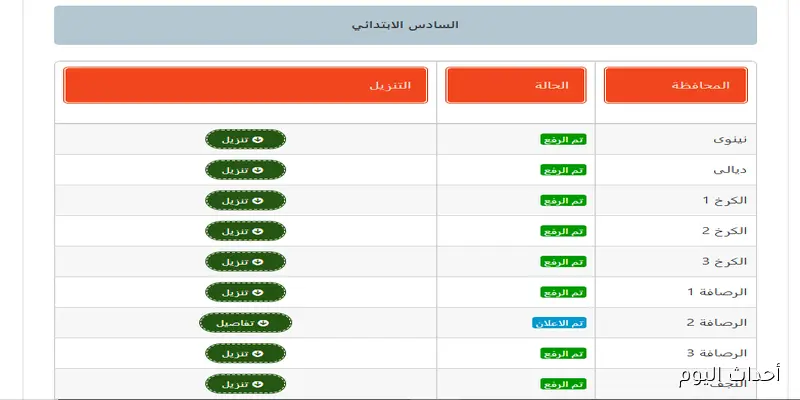 ظهور نتائج السادس الابتدائي 2025 الدور الثاني PDF في جميع محافظات العراق
