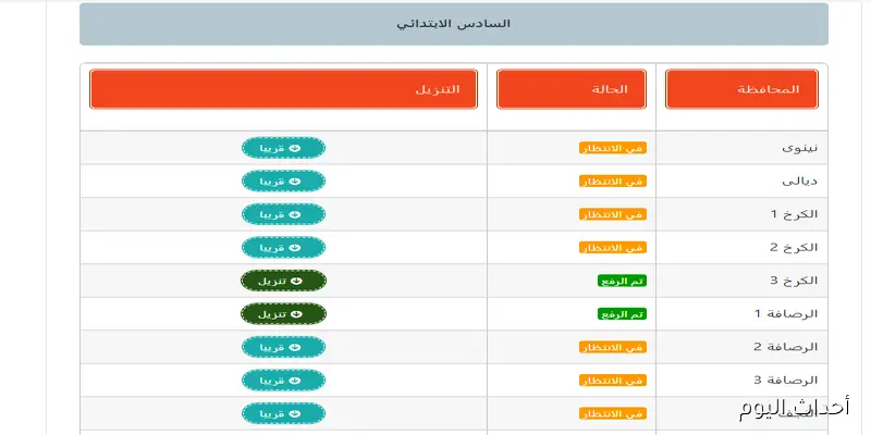 اعلان نتائجنا نتائج السادس الابتدائي 2025 الدور الثاني (الكرخ، الرصافة، واسط، صلاح الدين، كربلاء، ديالى)