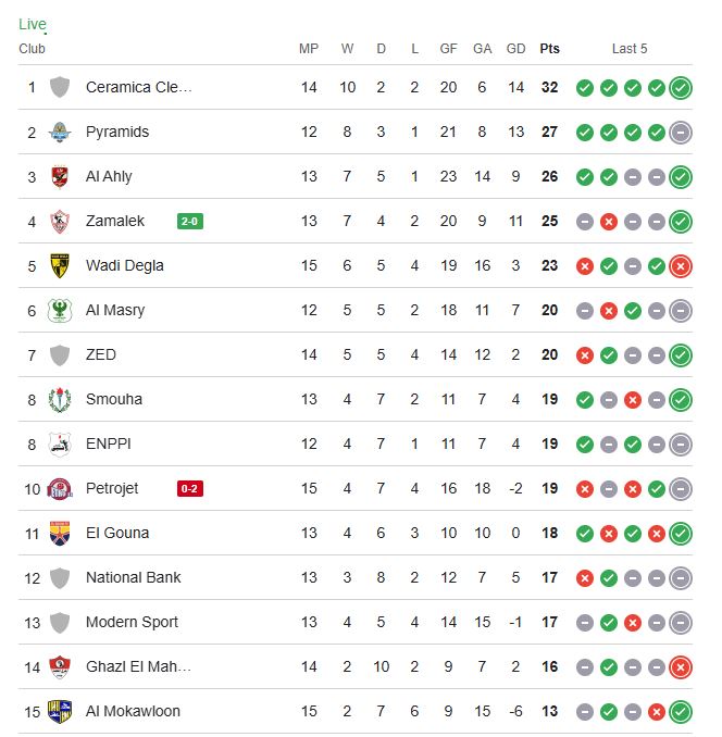 بعد الفوز، الزمالك رفع رصيده لـ 25 نقطة ورجع للمربع الذهبي، بينما بتروجيت وقف رصيده عند 19 نقطة.