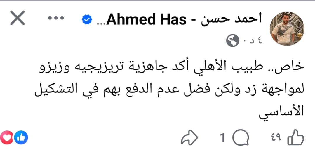 في نفس السياق، أوضح أحمد حسن عبر حسابه على «فيس بوك»، أن القرار جاء لأسباب فنية وبدنية، حيث أراد الجهاز الفني تجنب أي مخاطرة والحفاظ على اللاعبين كأوراق رابحة خلال المباراة، رغم تأكيد الجهاز الطبي بتمام جاهزيتهما.