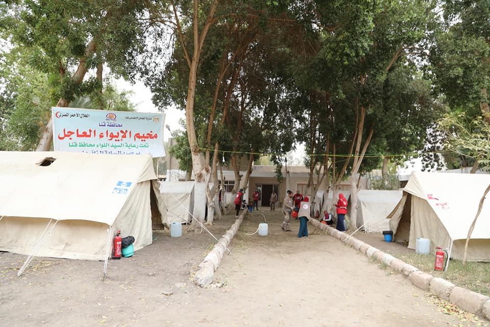 قال نجيب مجدي فيهم، وكيل وزارة التضامن الاجتماعي في قنا، إنه تم تجهيز مخيم للإيواء العاجل في مركز الإغاثة بمنطقة المعنا لاستقبال أي حالات طارئة، حيث تم تجهيز 350 خيمة في مخزن المديرية بالإضافة إلى 84 خيمة من المحافظات المجاورة. هناك غرفة عمليات لتلقي البلاغات على خط مباشر مع غرفة عمليات الوزارة والمحافظة، وفي حال وجود أي بلاغ يتم التحرك مباشرة، وفريق الإغاثة جاهز للتعامل الفوري.