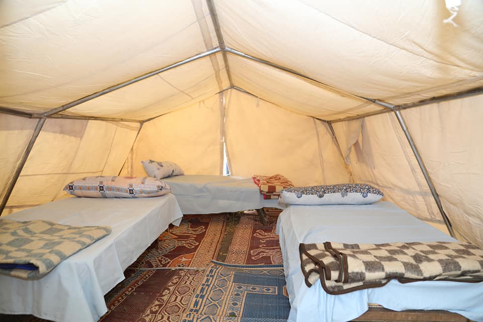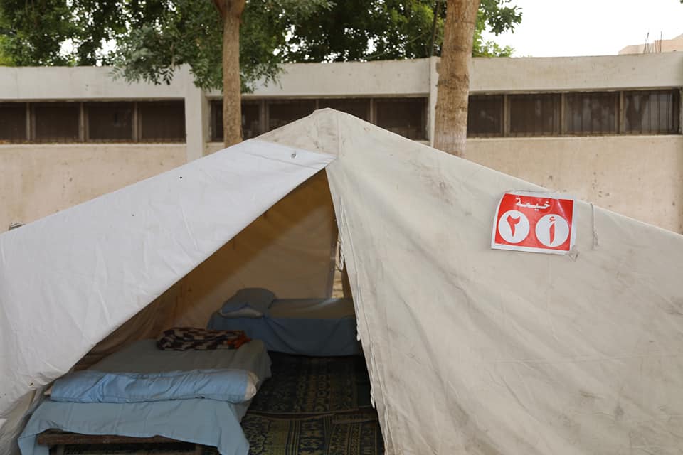 يوجد بمركز الإيواء في المعنا 25 خيمة تستوعب 5 أفراد لكل خيمة، مع تجهيز العديد من أدوات الإغاثة مثل الأسرة وأدوات الطهي وخزانات المياه، وتوفير عدد من الشباب المدرب من جمعية الهلال الأحمر للتعامل مع الأزمات.