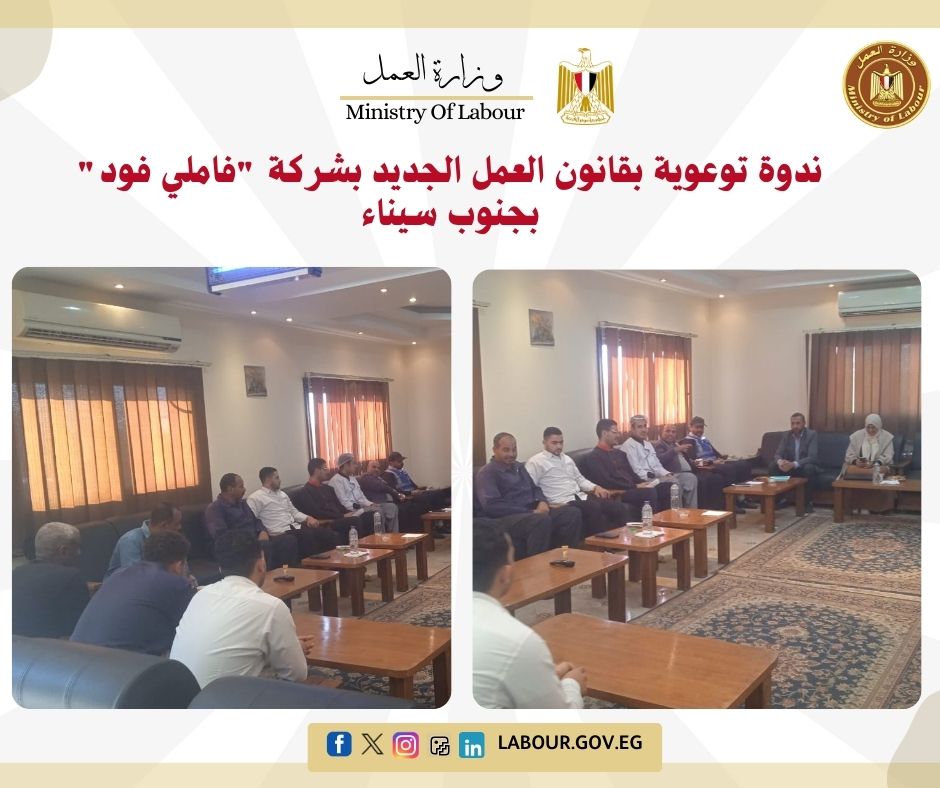 ندوة توعوية بقانون العمل الجديد بشركة “فاملي فود” بجنوب سيناء